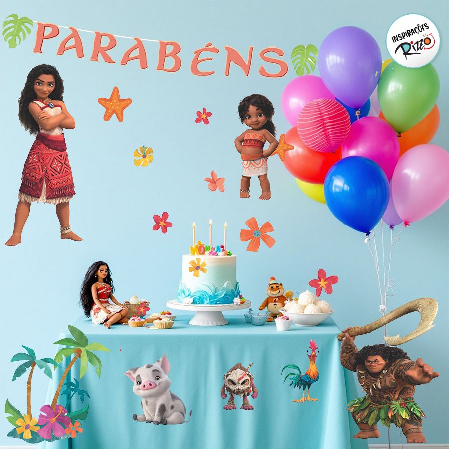 Kit de painéis decorativos, tema Moana 2. Licenciado Disney