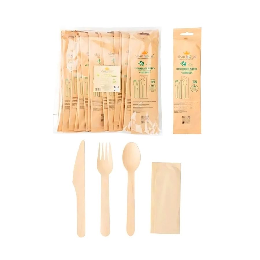 Feitos de madeira de alta qualidade, esses talheres são duráveis, leves e perfeitos para uma opção mais ecológica em vez de talheres plásticos. O guardanapo acompanha o conjunto, garantindo maior conforto e funcionalidade para os seus convidados.