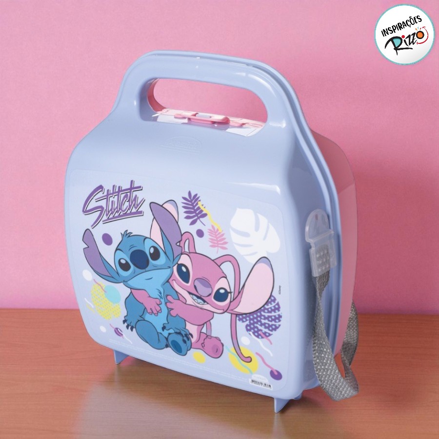 Lancheira plastica com estampa inspirada no personagem Stitch Disney. Produto licenciado. Não indicada para menores de 3 anos.