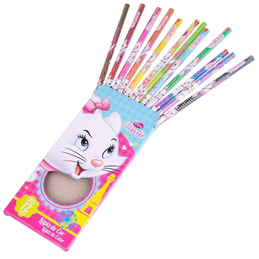 Cada embalagem contém 12 lápis de cor de aproximadamente 17 cm, oferecendo cores vivas e alegres para compor traços e pinturas cheias de estilo. Combine o Lápis de Cor Marie Disney com cadernos, estojos, mochilas e outros artigos da mesma coleção para criar conjuntos encantadores, perfeitos para presentes ou material escolar.
