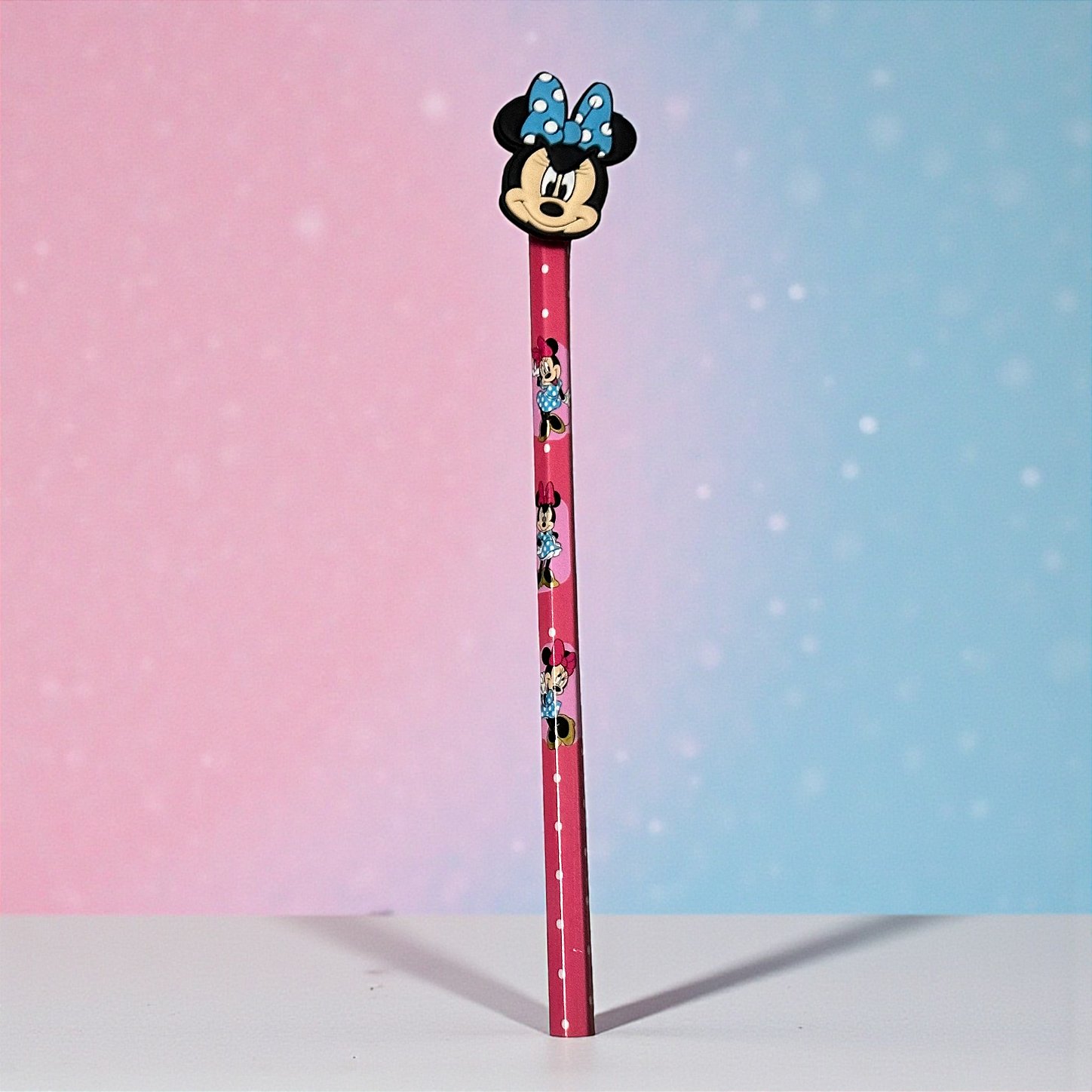 O aplique removível possibilita reaproveitamento, já que pode ser aplicado em outro lápis ou acessório quando este acabar, tornando o item versátil e colecionável. O visual temático transforma o lápis em um destaque no estojo e combina facilmente com canetas Minnie, lapiseiras, estojos decorados e outros itens do mesmo personagem. Ideal para uso diário, coleção, montagem de kits escolares, brindes e lembrancinhas, unindo utilidade e beleza em um único produto.