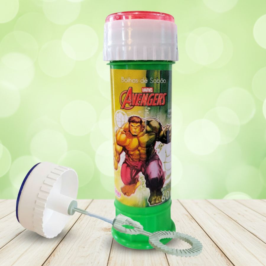 A Lembrancinha Bolha de Sabão Hulk 60ml é perfeita para deixar qualquer festa infantil ainda mais divertida, trazendo o universo dos Vingadores para o momento de brincadeira. Com visual inspirado no Hulk, o frasco possui tampa com mini labirinto, garantindo entretenimento extra para as crianças. A fórmula é atóxica e perfumada, indicada para maiores de 3 anos, e conta com os selos INMETRO e ICEPEX, assegurando segurança e conformidade para uso infantil.