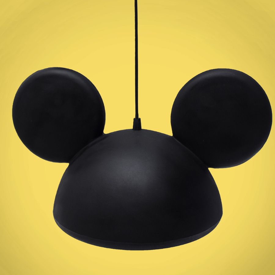 Luminária pendente inspirada no Mickey Mouse Disney com cabo de 1,5m preto e canopla preta. Compatível com lâmpadas LED de até 15W (não inclusas).