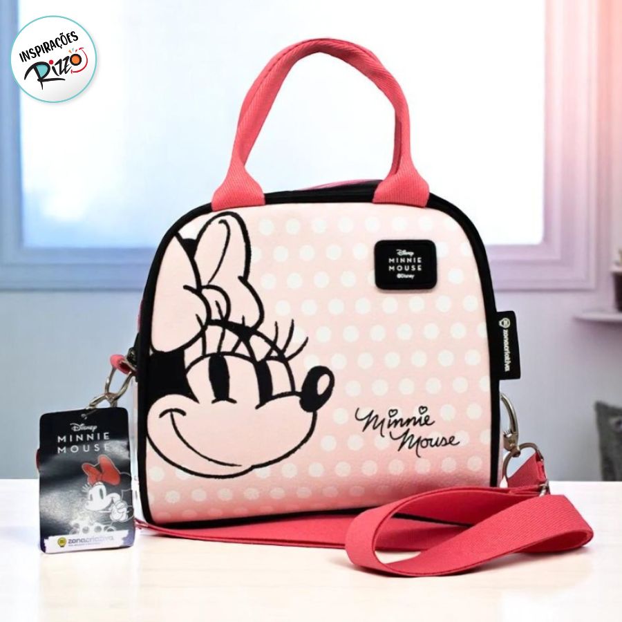 Conta com alça superior para transporte manual e alça transversal ajustável e removível, que garante conforto e versatilidade no uso diário. Compacta e prática, mede 18x20cm e é uma ótima opção para presentear fãs da personagem mais icônica da Disney. A maleta térmica Minnie licenciada combina estilo e funcionalidade na medida certa.