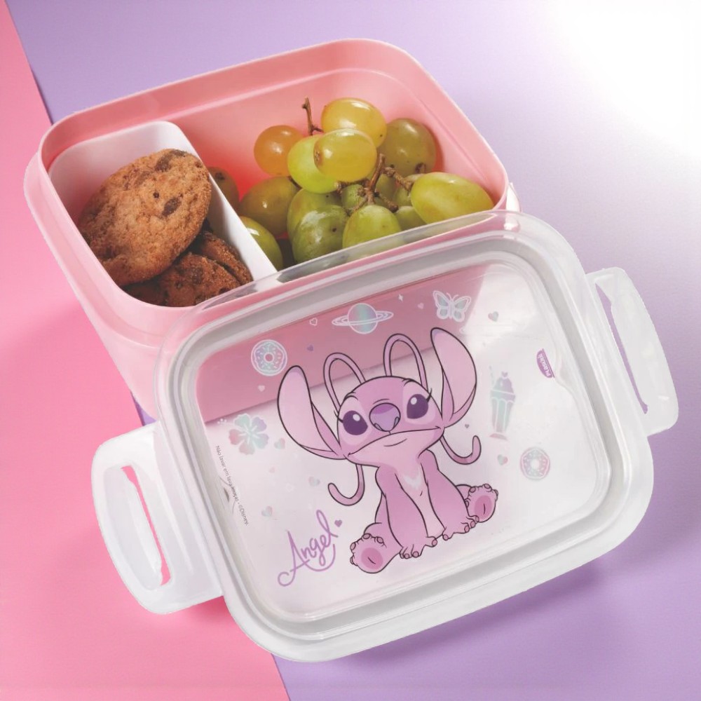 Marmita hérmetica com divisória removivel inspirada no personagem Angel Disney. Produto Licenciado.