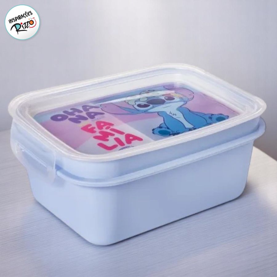 A marmita hermética do Stitch é perfeita para tornar a rotina mais prática e divertida. Com capacidade de 850ml, possui vedação na tampa que ajuda a conservar os alimentos por mais tempo, além de um visual encantador com pote azul e tampa transparente decorada com o personagem Stitch.