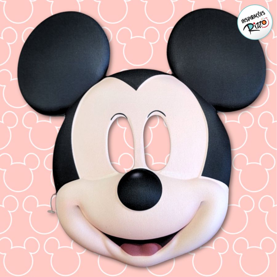 Máscara de EVA do Mickey Mouse com traços clássicos e alto relevo nas orelhas. Estampa colorida em alta definição diretamente no material, possui recorte anatômico para os olhos e elástico fixo, oferecendo praticidade e conforto.