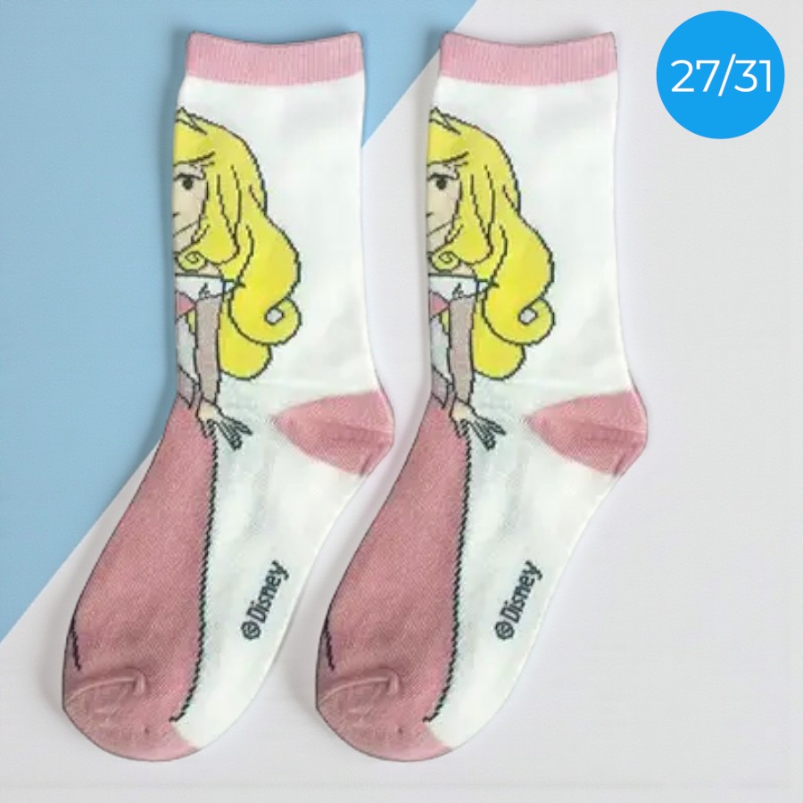 1 Par de Meias Infantil cano médio com estampa inspirada nas Princesas Disney. Produto licenciado.