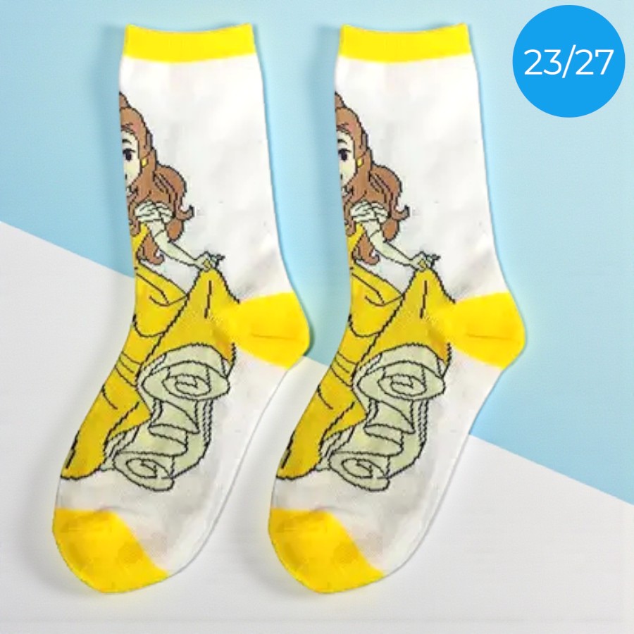 1 Par de Meias Infantil cano médio com estampa inspirada nas Princesas Disney. Produto licenciado.