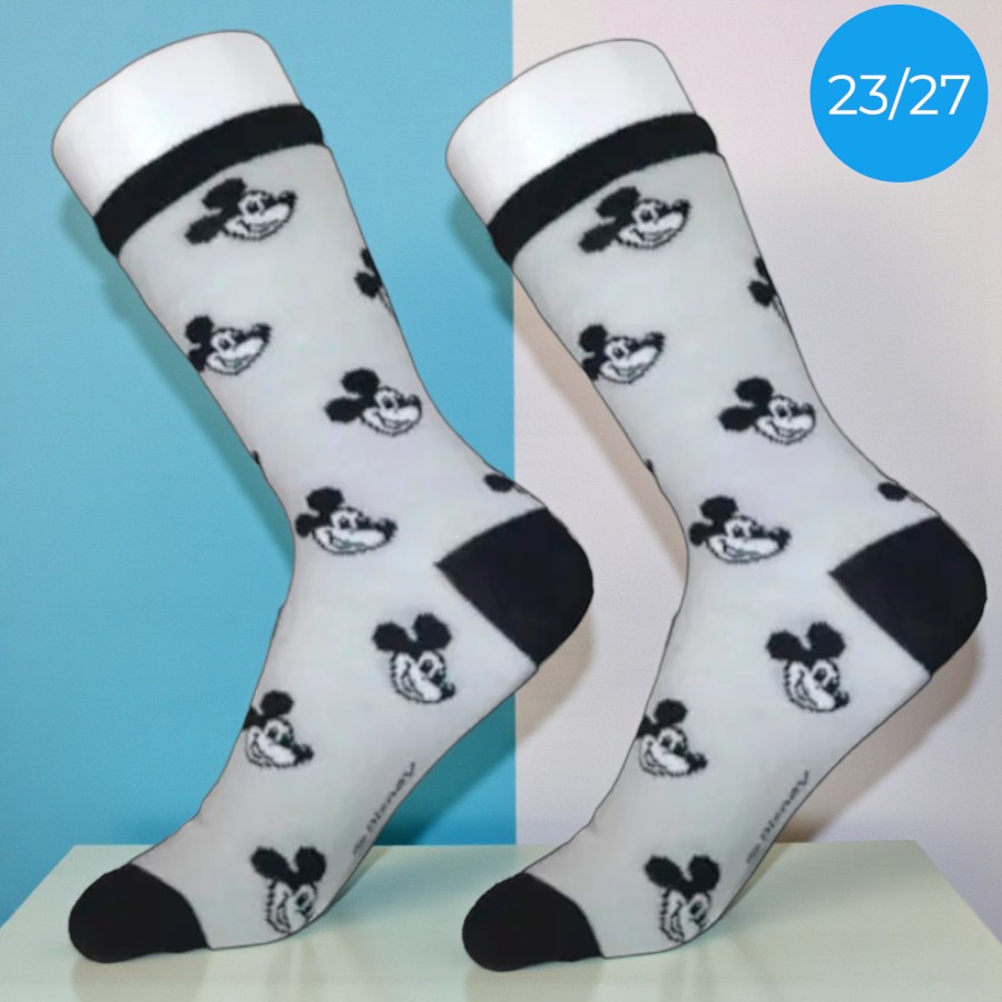 A Meia Infantil Cano Médio Mickey Mouse é inspirada no Mickey Disney e combina tons de cinza com preto, criando um visual moderno e cheio de personalidade para o dia a dia infantil. Uma opção estilosa que adiciona o charme do personagem aos looks das crianças.