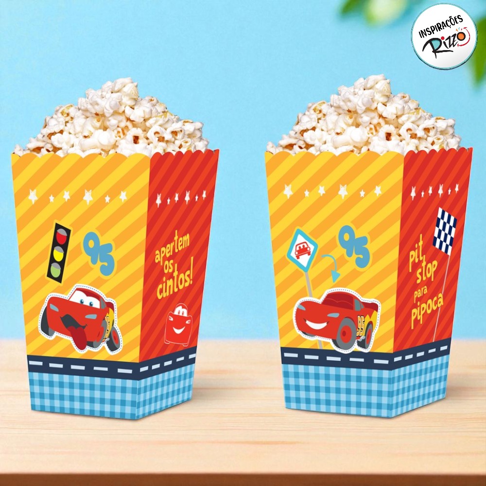 Caixinha de papel para pipoca inspirada nos personagens do filme Carros Disney Pixar