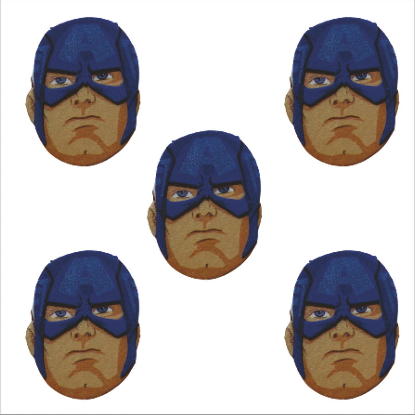 Mini carinha de Capitão América, feita de cartonato e EVA, ideal para decoração temática dos Vingadores.