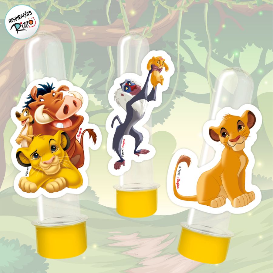 Podem ser colados em tubetes, caixinhas, sacolas, potinhos de acrílico, tags e outros elementos da decoração ou lembrancinhas. Versáteis, leves e fáceis de aplicar, esses mini apliques ajudam a criar uma composição divertida e cheia de personalidade para sua festa Rei Leão