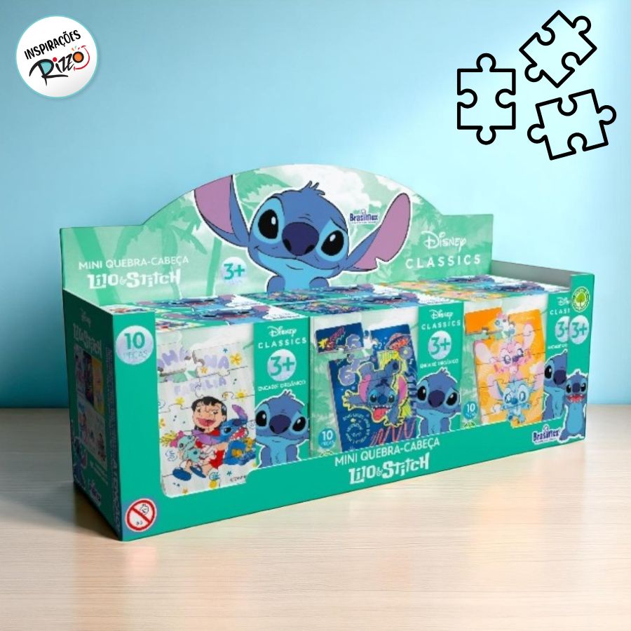 Encante sua festa com o Mini Quebra-Cabeças de MDF - Lilo e Stitch. A caixinha inclui 6 unidades embaladas individualmente, perfeitas para lembrancinhas divertidas e criativas. Cada peça é feita em MDF e papel adesivo, trazendo estampas vibrantes com os personagens mais adoráveis do Havaí.