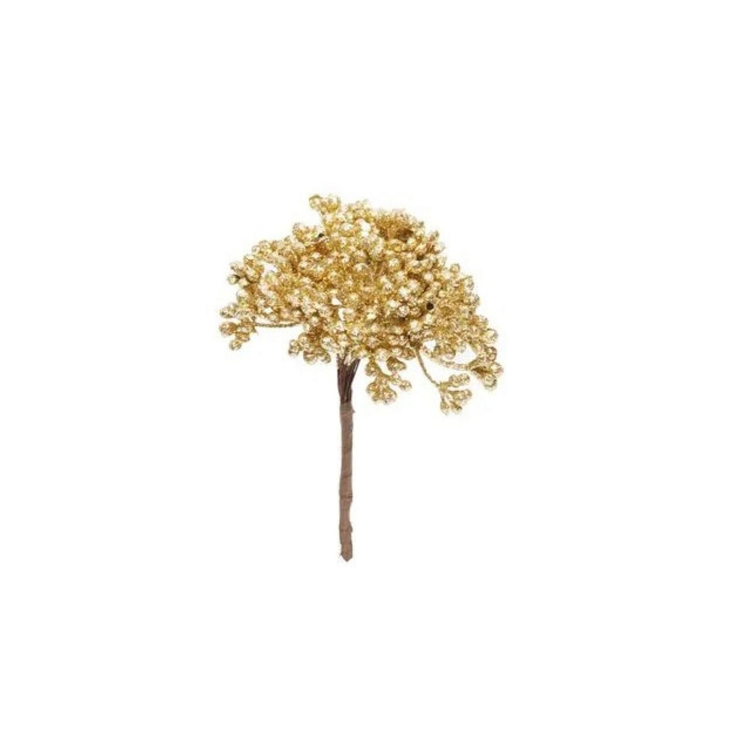 A Pick Decorativo de Natal em ouro com glitter tem 15 cm, ideal para árvores, arranjos e guirlandas natalinas.