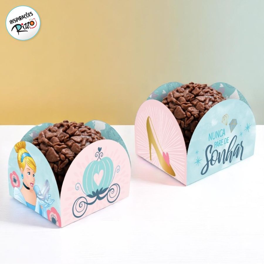 Deixe sua mesa ainda mais encantadora com o Porta Forminha - Festa Cinderela. Perfeito para acomodar docinhos com delicadeza e charme, ele traz a magia da princesa Cinderela para a sua festa.