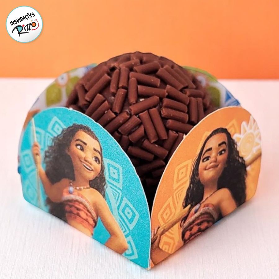 Com estas forminhas para pequenos doces inspirados na Moana é uma customização encantadora para docinhos como por exemplo: brigadeiro, trufinhas, bombons, beijinho... Agregando ao tema da festa beleza desta adorada personagem da Disney.