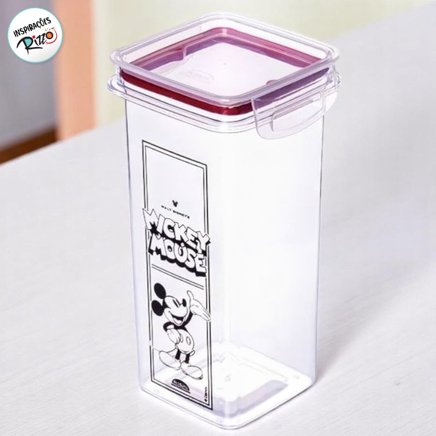 Pote de plástico com fechamento hermético, estampa tema Mickey Mouse