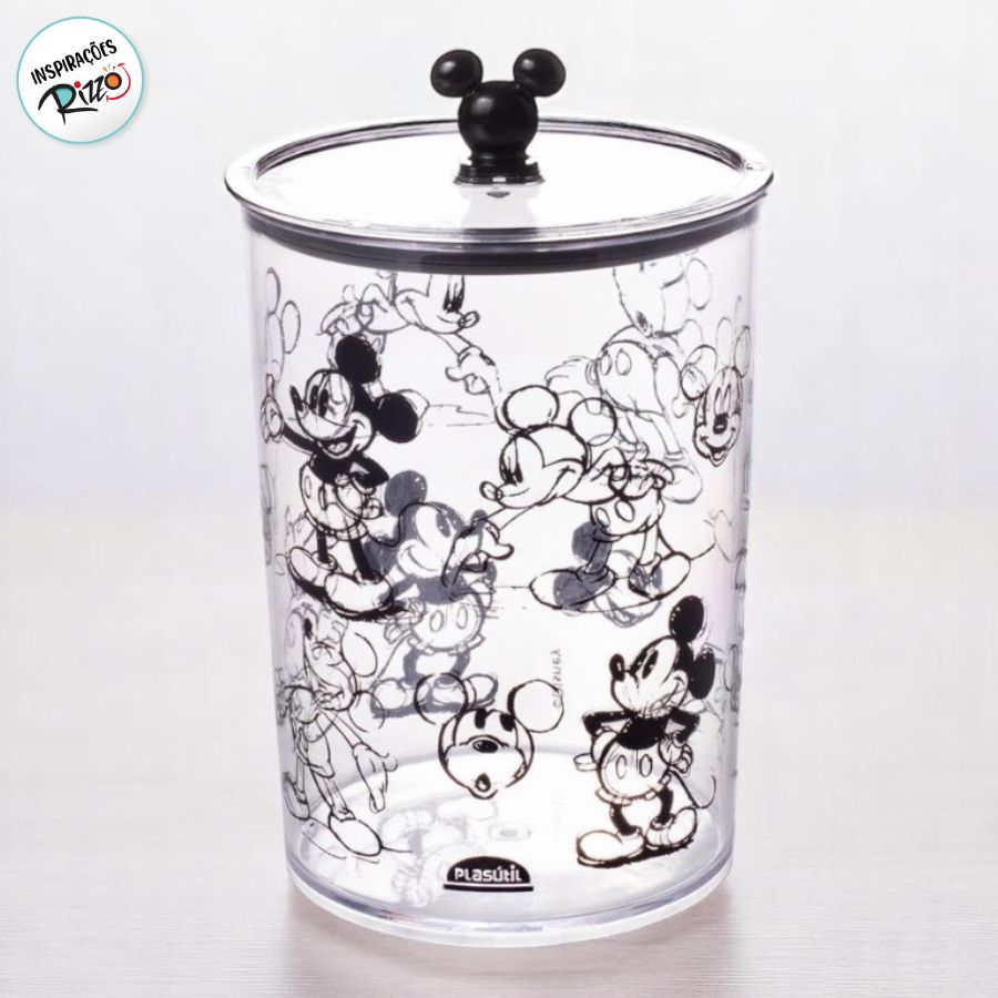 Fabricado em poliestireno (PS) — material atóxico e transparente — o pote traz decoração com contorno do Mickey e pegador no formato da luva do personagem. Não pode ser levado ao micro-ondas, lava-louças ou freezer. Combine com os demais modelos para formar um conjunto funcional e divertido!