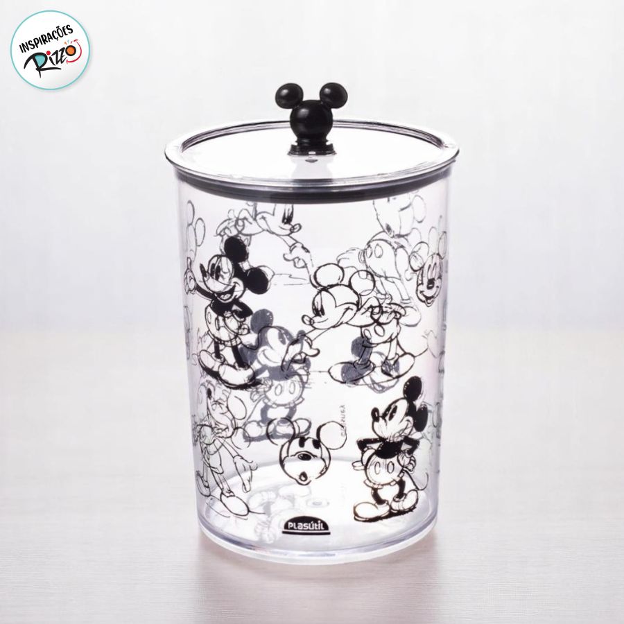 Pote de plástico, redondo com tampa hermética, decorado tema Mickey Mouse