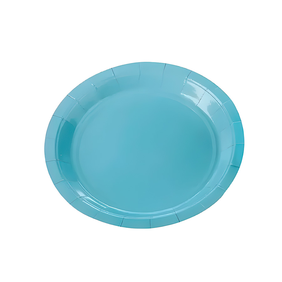 Prato redondo liso de papel na cor azul bebê