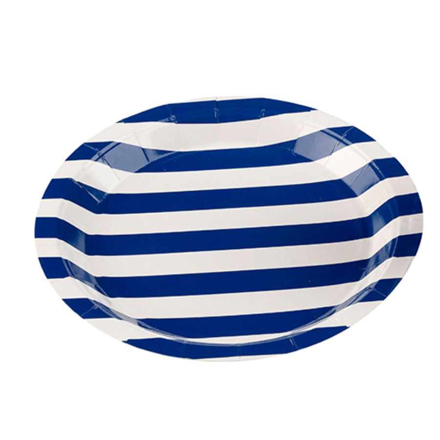 Prato Papel Biodegradável Listrado Azul - 10 unidades - 18 cm - Rizzo