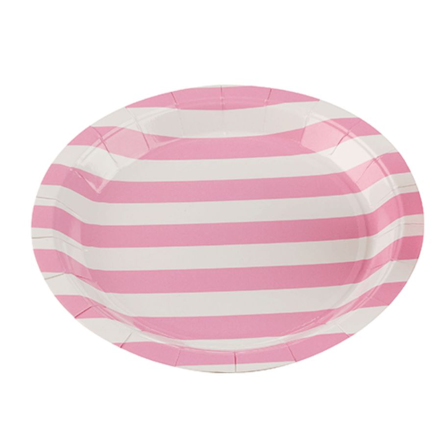 Prato Papel Biodegradável Listrado Rosa Bebe - 10 unidades - 18 cm - Rizzo