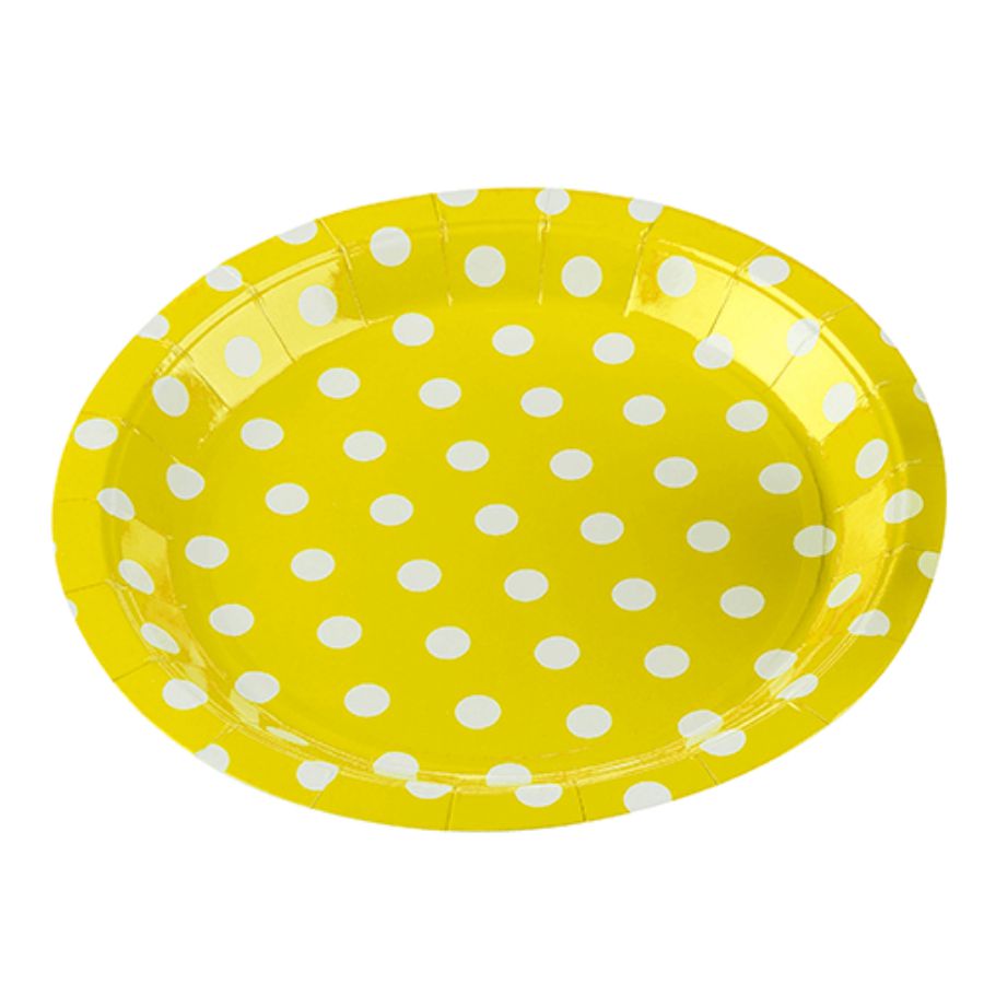 Prato Papel Biodegradável Poá Amarelo - 10 unidades - 18 cm - Rizzo