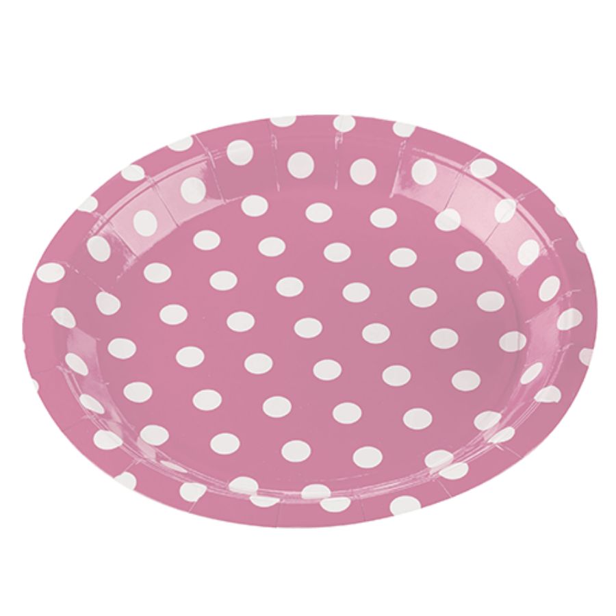 Prato Papel Biodegradável Poá Rosa Bebe - 10 unidades - 18 cm - Rizzo