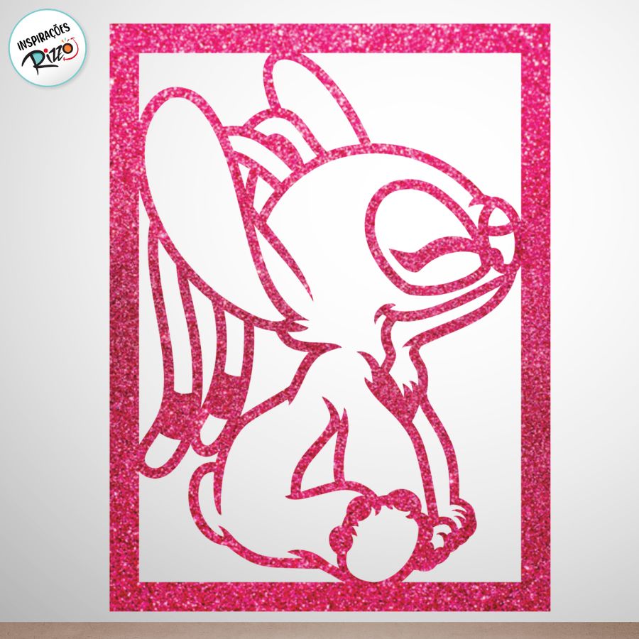 Feita em EVA vazado com aplicação de glitter Rosa, é leve, versátil e pode ser fixado facilmente em paredes, painéis ou outros suportes. Uma escolha divertida e prática para quem ama o universo da Angel Stitch.