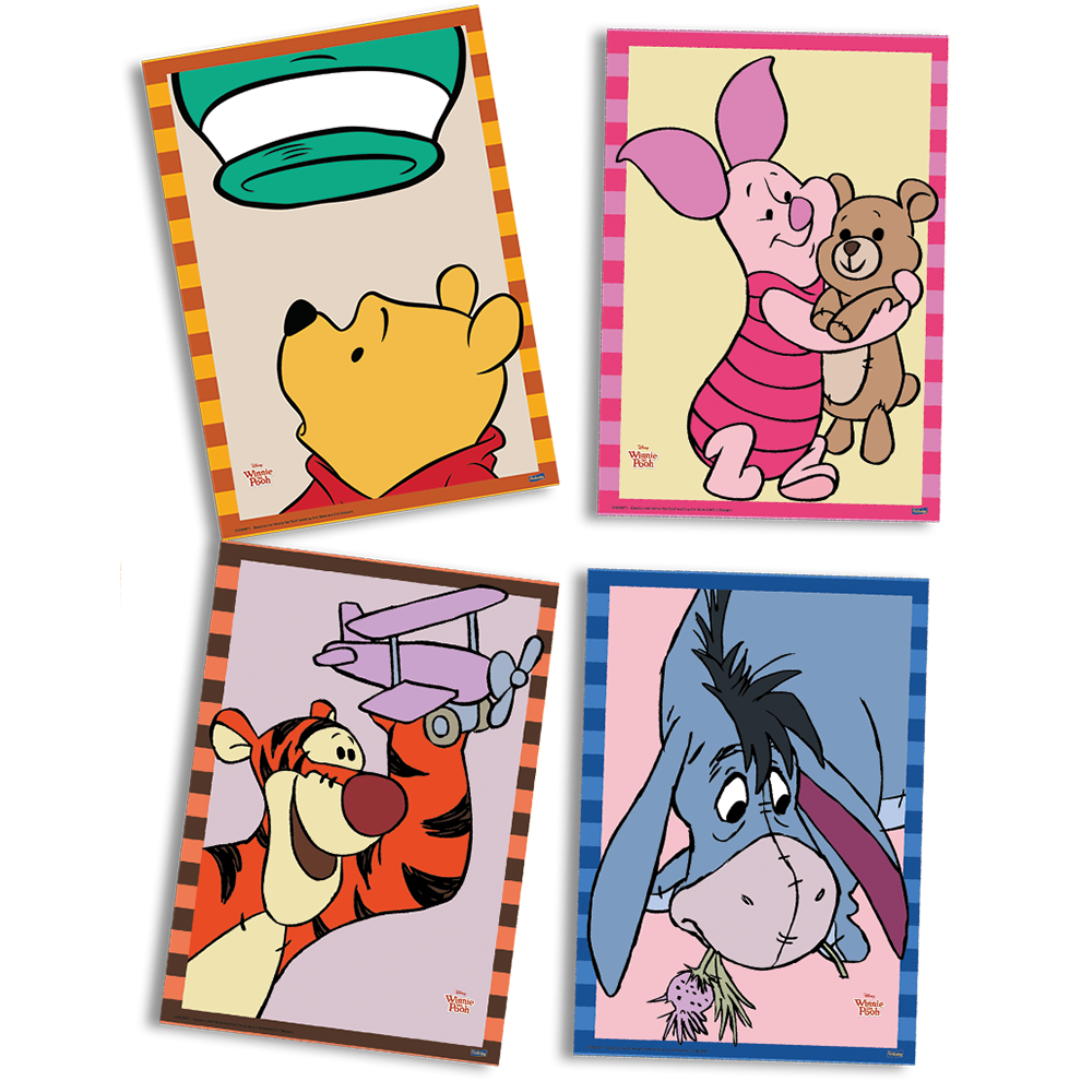 Traga a magia e a diversão da turma do Pooh para a sua festa com o Quadro Decorativo Disney Original. Ideal para completar a decoração, cada quadro exibe os adoráveis personagens como Pooh, Tigrão, Leitão e outros, criando um ambiente encantador e acolhedor.