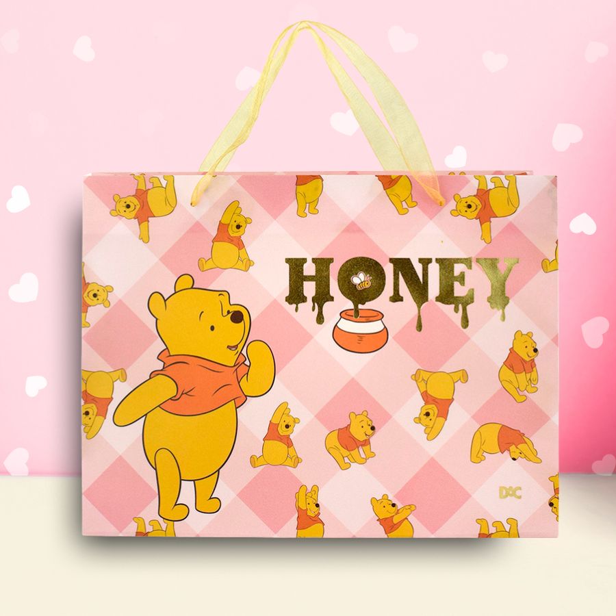 A sacola apresenta um tamanho versátil, perfeito para acomodar diversos tipos de produtos com organização e charme. O acabamento bem elaborado valoriza a composição visual, sendo uma excelente opção para quem busca elegância em embalagens criativas. Inspirado no Ursinho Pooh Disney, este item transforma a entrega de presentes em uma experiência diferenciada, reforçando o cuidado com cada detalhe. Uma escolha prática e estilosa para datas comemorativas, eventos, ações promocionais ou uso cotidiano, unindo beleza, resistência e um visual que transmite carinho e nostalgia.
