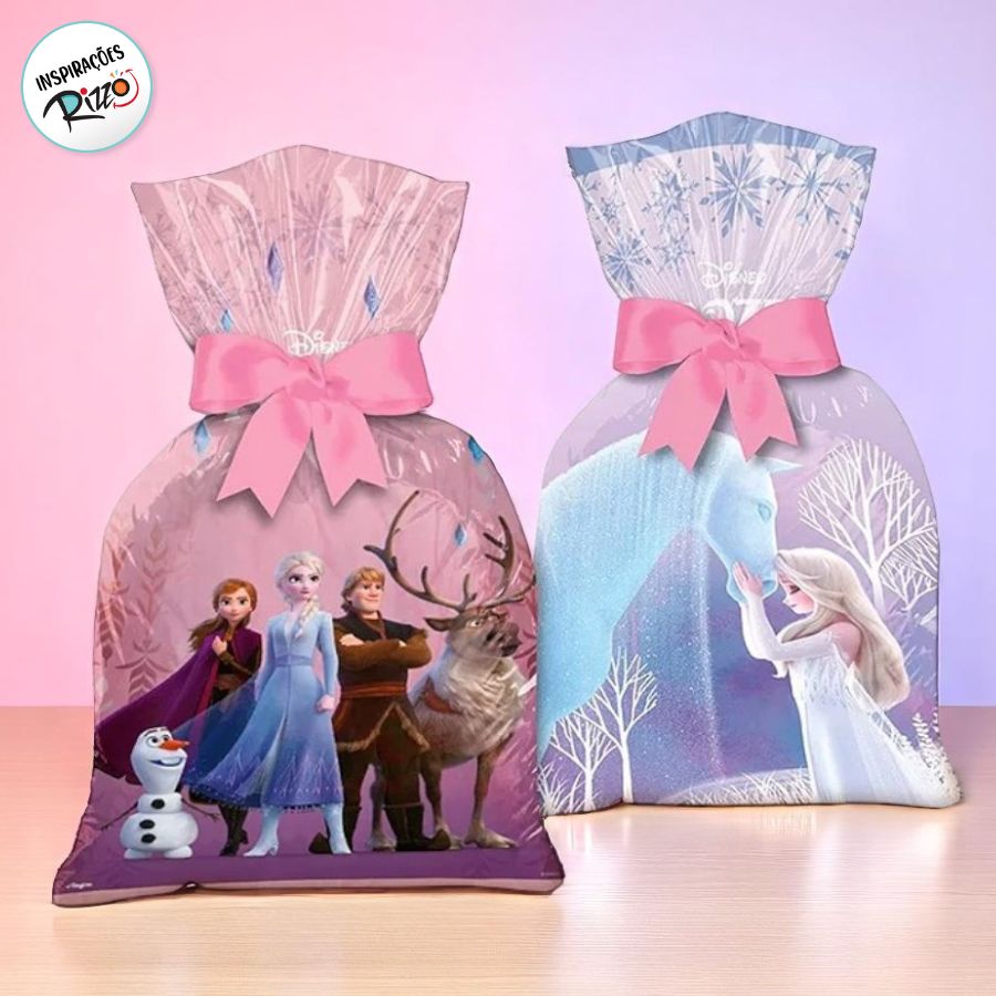 Sacola plástica temática Frozen. Não acompanha acessórios para fechamento.