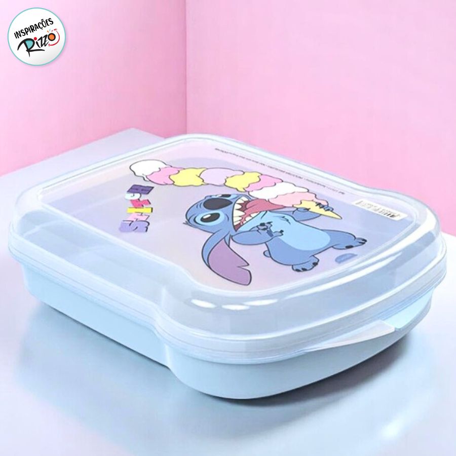 A sanduicheira do Stitch é perfeita para deixar os momentos de lanche ainda mais divertidos! Com tampa decorada com o personagem, ela traz praticidade para transportar sanduíches, frutas e pequenos lanches no dia a dia.