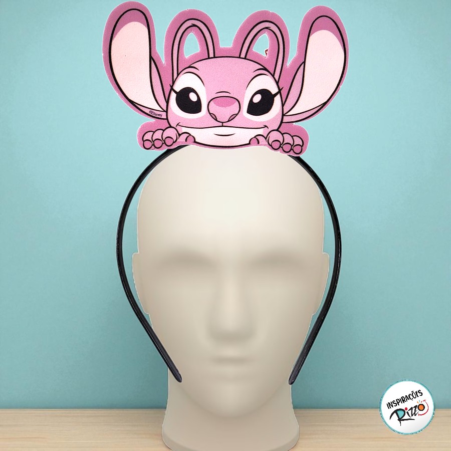 Tiara plastica com aplique em EVA inspirado na personagem Angel Stitch Disney