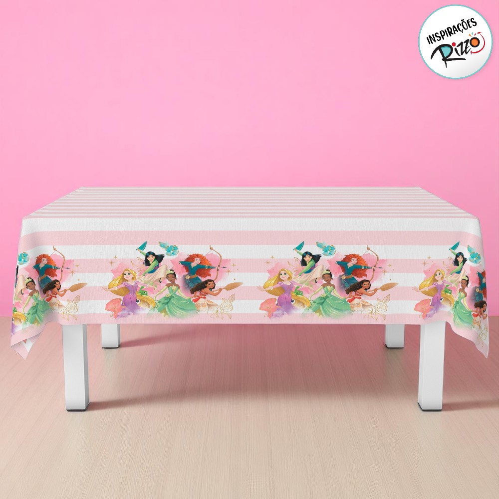 Com estampa em alta resolução das clássicas Princesas Disney, essa toalha contribui para criar um ambiente temático encantador. Perfeita para festas com o universo mágico das princesas. Produto licenciado Disney.