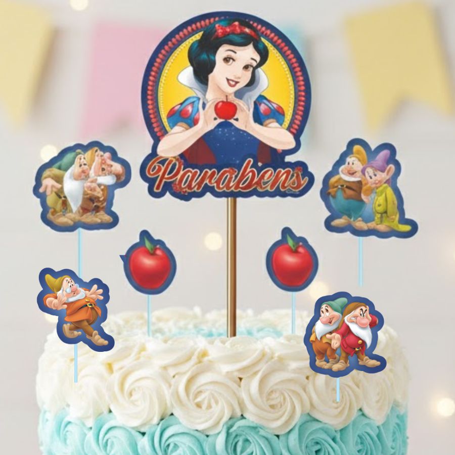 Kit com 7 peças para topo de bolo inspirado em Branca de Neve Disney
