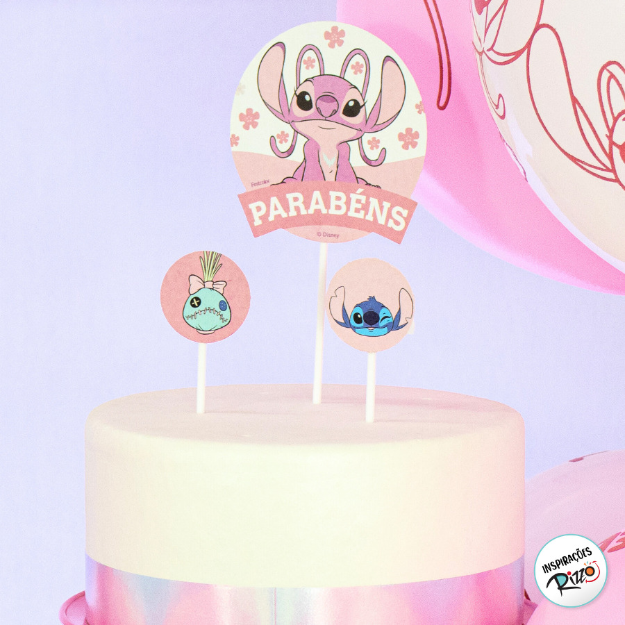 Perfeito para festas com o tema Angel do Stitch, o topo de bolo une charme e praticidade na hora de montar sua celebração. Também é uma ótima opção para compor a decoração junto com outros itens da linha Festa Stitch e Angel. Estampa licenciada Disney