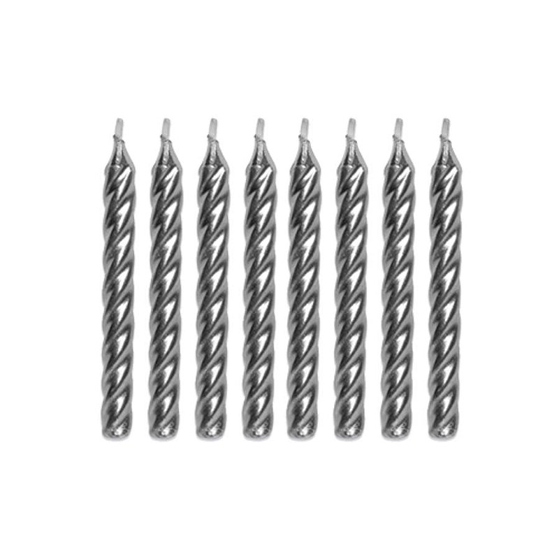 Velas Espiral Prateada - 8 unidades - Rizzo