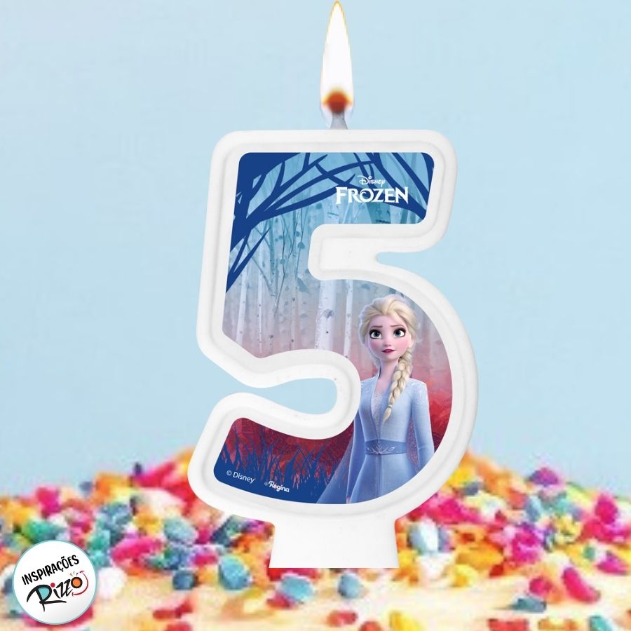 Vela numeral 5 inspirada na princesa Frozen Disney.