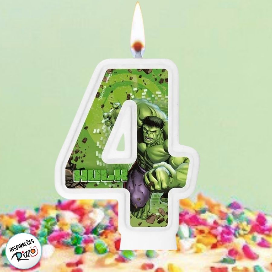 Vela numeral 4 inspirada no personagem Hulk - Marvel Disney