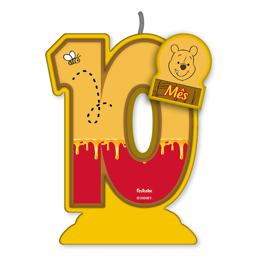Vela Mesversário Festa Pooh e sua Turma - 10º mês - 01 Unidade - Disney Original - Rizzo