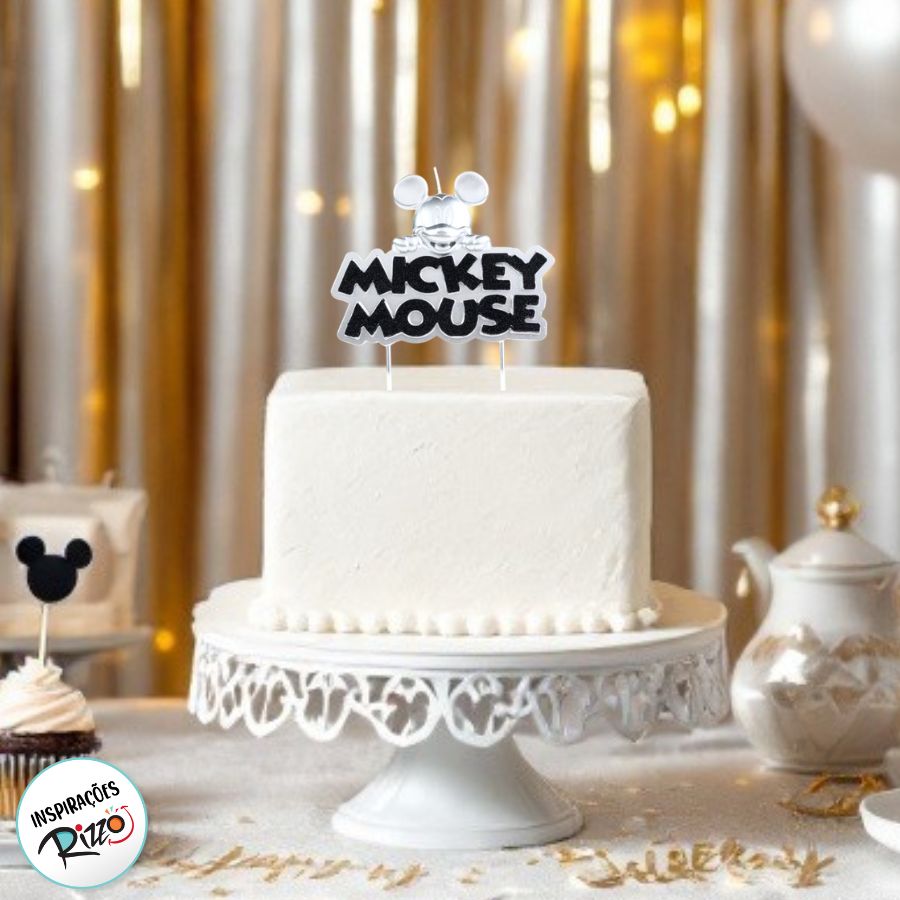 Vela Mickey Metalizada Prata - Disney Original - 1 unidade - Rizzo