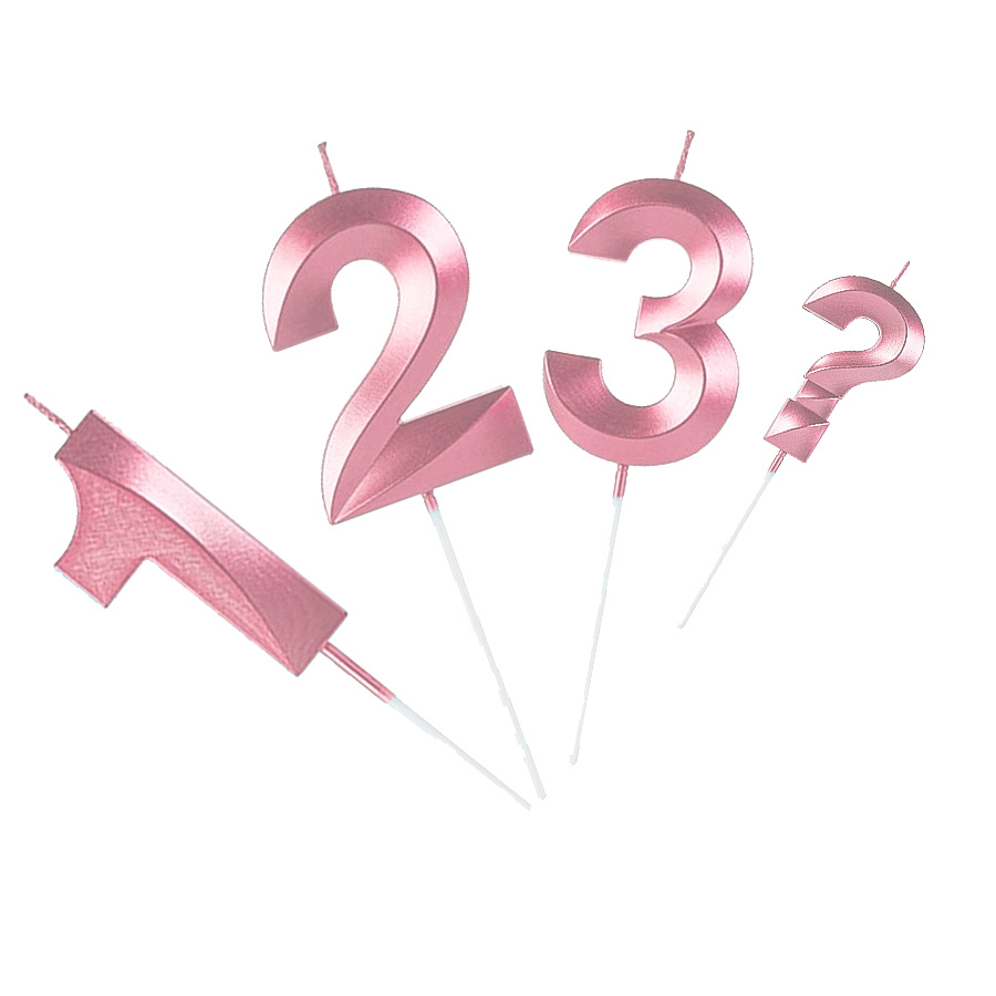 Velas de aniversário candy color na cor rosa com os números 0, 1, 2, 3, 4, 5, 6, 7, 8, 9 e ?