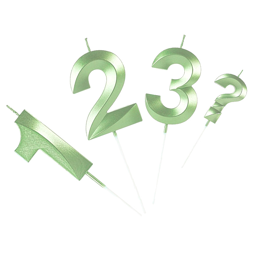 Velas de aniversário candy color na cor verde com os números 0, 1, 2, 3, 4, 5, 6, 7, 8, 9 e ?