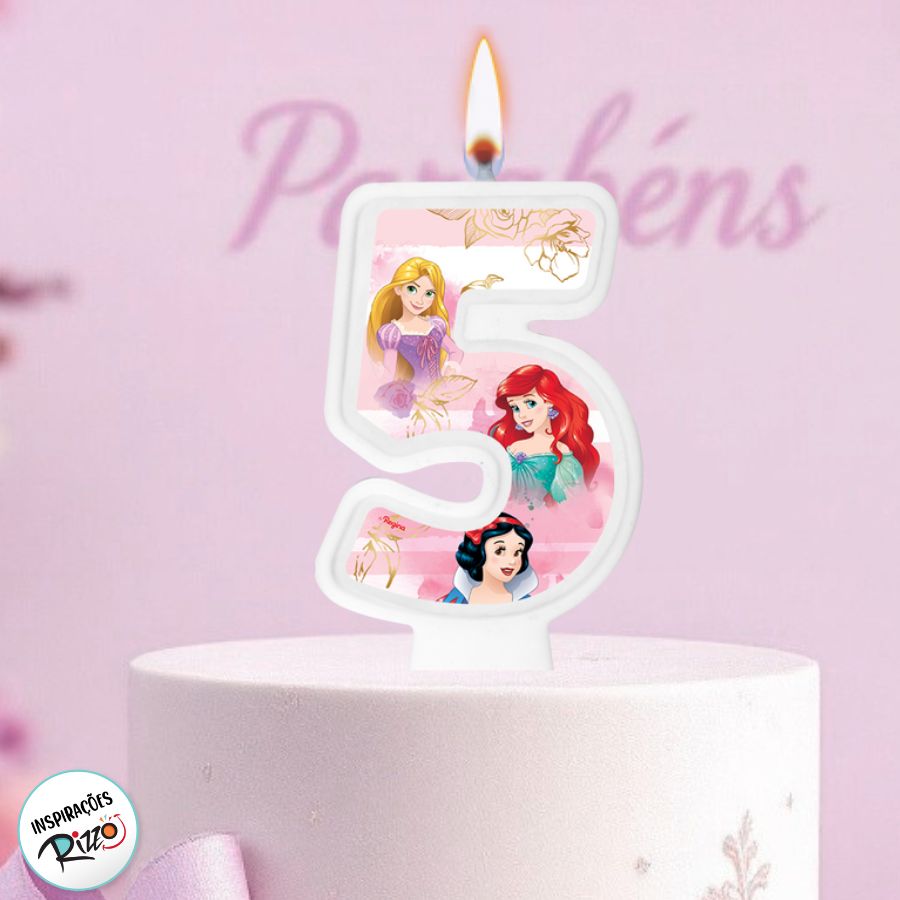 Vela numeral inspirada nas Princesas Disney.